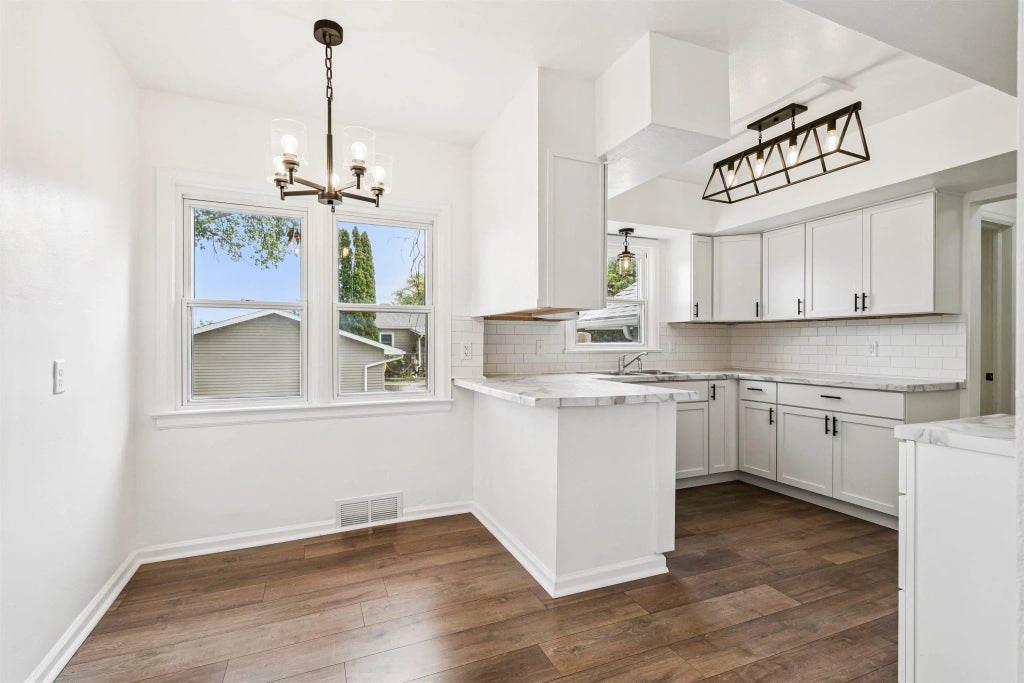 Check out this fully remodeled ranch style home with nothing left to do! All of the work has been done for you in this great home. Walking in the front door you will see an expansive living room with a cozy wood burning fireplace that opens up to the fresh new kitchen. The main floor is spacious and bright and consists of 3 bedrooms and a fully renovated bathroom. Moving downstairs you are greeted by a nice screened in porch that is perfect spot for your morning coffee. As you get to the generous sized basement, there is plenty of room for storage or a home gym before you get to the walkout basement living space with an additional non-conforming bedroom and a 1/2 bath. This home features a new roof in 2024 and a brand new furnace/ac in 2025. Moving outside, a brand new deck looks over a good sized lot along with a detached 2-stall garage. All of the big work is done and ready for it's next owner! You don't want to miss this one!
