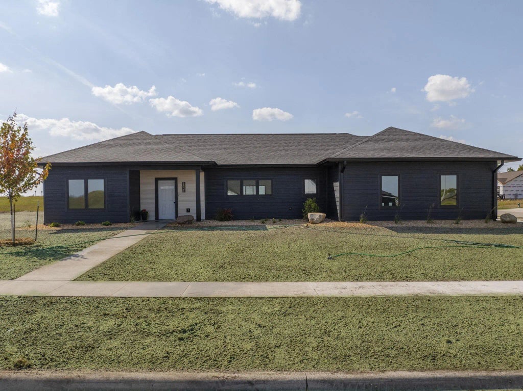 This brand-new, zero entry, ranch home offers 3 bedrooms, 2 baths, and a stylish open layout with vaulted ceilings. The kitchen features stainless steel GE appliances, a walk-in pantry, and quartz-topped laundry cabinets, while the master suite includes a tile shower and walk-in closet with a reinforced safe room. Energy Star rated, the home comes with an EV outlet, tankless water heater, smart thermostat, and Class 4 shingles for insurance savings. Outside, enjoy a covered porch, colored concrete patio, full landscaping, and a finished garage with loft storage, hot/cold water, floor drain, and keyless entry. This beautiful property is still under construction and is expected to be completed mid October.